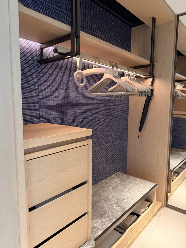 入口付近にハンガーや荷物をおく場所が設置されています。